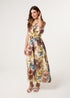 Blue Vanilla Multi Floral Wrap Belted Fine Silk Dress