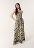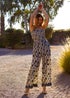 Blue Vanilla Multi Printed Bandeau Tie Neck Shirred Jumpsuit