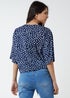 Blue Vanilla Navy Abstract Spot Tie Front Batwing Top