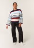 Blue Vanilla Navy Colourful Block Horizontal Stripes Jumper