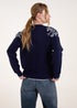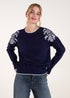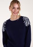 Blue Vanilla Navy Detailed Embroidery Shoulder Jumper