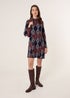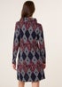 Blue Vanilla Navy Printed Draped Cowl Neck Long Sleeve Dress
