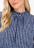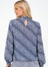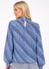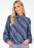 Blue Vanilla Navy Printed High Neck Puffball Blouse