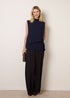 Blue Vanilla Navy Sleeveless Cowl Tie Front Chiffon Blouse