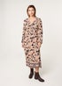 Blue Vanilla Navy V Neck Shirred Border Print Midi Dress