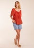 Blue Vanilla Orange Shirred At Front Swing Top