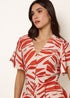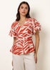 Blue Vanilla Orange Top With Brushstroke Leaf Print