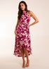 Blue Vanilla Pink Abstract Print Halter Neck Midi Wrap Dress