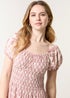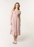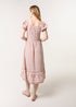 Blue Vanilla Pink Border Print Puff Sleeve Midi Dress