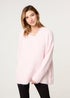 • Blue Vanilla Pink Lace Trim V Neck Jumper