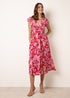 Blue Vanilla Pink Tropical Print Flutter Sleeve Midi Dress