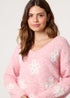 Blue Vanilla Pink V Neck Flower And Pearl Jumper