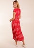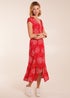 Blue Vanilla Red Button Through Shirred Waist Midi Dress
