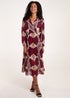 Blue Vanilla Red Wrap Front Pleated Geometric Maxi Dress