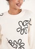 A cute, fun, feel good jumper to add to your collection of knitwear this season. The sequin detailed flower jumper will sure to add some daily fun to your style. Team with PU leather look trousers and pumps.