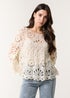 Blue Vanilla Stone Crochet Top With Flared Sleeves