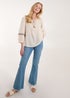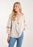 Blue Vanilla Stone Embroidered Pleat Sleeve Top