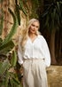 Blue Vanilla Stone Stripe Wide Leg Linen Trousers