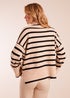 Blue Vanilla Stone Wide Stripe Roll Neck Jumper