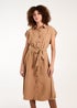 Blue Vanilla Tan Button Front Midi Utility Shirt Dress