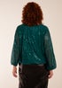 Blue Vanilla Teal Curve Sequin Batwing Blouse