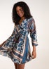 Blue Vanilla Teal Scarf Print Batwing Crossover Dress