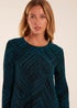 Blue Vanilla Teal Stripe Glittery Long Sleeve Shift Mini Dress