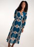 Blue Vanilla Teal Wrap Front Pleated Geometric Maxi Dress