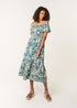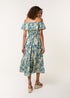 Blue Vanilla Turquoise Gold Beaded Bardot Midi Dress