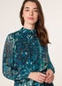 • Blue Vanilla Turquoise Watercolour Paisley Puffball High Neck Midi Dress
