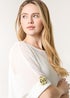 This crochet top is the perfect throw-on piece this season! With is cute gold flower detailing on the sleeves. Team with coloured denim jeans and gold sandals and accessories for the ultimate outfit!