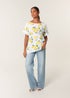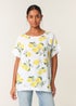 Blue Vanilla White Linen Front Lemon Print Top With Sequin
