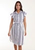 Blue Vanilla White Stripe Button Front Shirt Dress