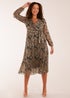 Blue Vanilla Wrap Over Metallic Vertical Print Dress