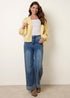 Blue Vanilla Yellow Flower Embroidery Detailed Cardigan