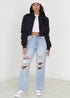 Introducing this cropped bomber jacket from Brave Soul, the ultimate combination of style and comfort. The jacket features a cropped length, zip-through fastening, and ruched sleeve detail for a chic and trendy look. The ribbed hem and cuffs provide a snug fit, while being both lightweight and durable. Available in other colours. Model wears UK size 8.