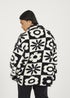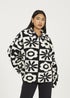 Brave Soul Black Graphic Flower Print Zip Through Sherpa Fleece