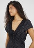 Timeless and effortlessly romantic, this midi dress from Brave Soul is a wardrobe classic with a playful twist. Designed in an all-over polka dot print, it features a flattering V-neckline with lace trim details and short sleeves, perfect for sunny days or layered styling. Front tie detail and tie-back fastening let you shape your fit just the way you like it. The midi length keeps it elegant and easy to wear, from day to night. Model wears UK size S.
