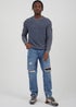 Brave Soul Blue Cotton Crew Neck Acid Wash Rib Knit Jumper