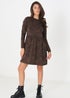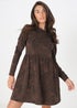 Brave Soul Brown Cotton Animal Print Long Sleeve Mini Smock Dress