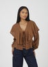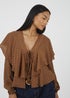 Brave Soul Brown Long Sleeve Top With Frill Detail