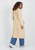 Brave Soul Camel Double-Breasted Longline Trench Coat with Raglan Sleeves