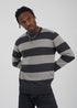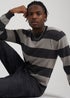 Brave Soul Charcoal Cotton Crew Neck Block Striped Knit Jumper