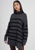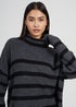 Brave Soul Charcoal Oversized Striped Roll Neck Jumper