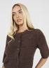 Brave Soul Chocolate Short Sleeve Fluffy Yarn Cardigan