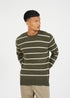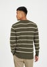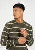 Brave Soul Dark Green Crew Neck Striped Textured Knit Jumper