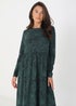 Brave Soul Green Cotton Animal Print Long Sleeve Midi Smock Dress
