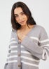 Brave Soul Grey Button Through V-neck Stripe Cardigan