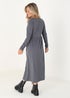 Brave Soul Grey Cotton Long Sleeve Midi Smock Dress