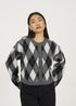 Brave Soul Grey Round Neck Argyle Knit Cardigan